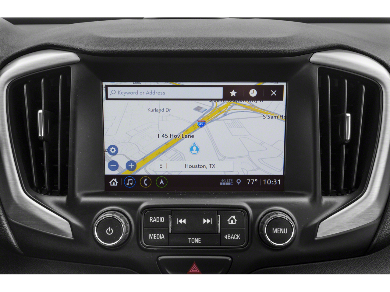 - 8" diagonal GMC Infotainment System with Navigation, includes multi-touch display, AM/FM/SiriusXM1 radio