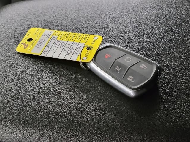 - Opens or closes when the system senses the key fob and the driver extends their foot under the left-hand side of the rear bumper over an image of the Cadillac Crest projected under the vehicle
